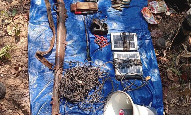 जिला गरियाबंद क्षेत्रांतर्गत नक्सल प्रभावित जंगल/पहाडी क्षेत्र के 02 अलग-अलग जगहों पर नक्सलियों द्वारा डम्प किये गये सामग्री को बरामद किया गया। जिला पुलिस बल ई-30 ऑपरेशन, सीएएफ, सीआरपीएफ की संयुक्त टीम गरियाबंद के द्वारा कार्यवाही। पुलिस पार्टी को जान/माल की नुकसान पहुंचाने एवं ग्रामीणो में दहशत फैलाने की नियत से डम्प किये गये 01 नग 303 रायफल पुलिस बल से लूटा गया, 01 नग देशी पिस्टल, 12 बोर 31 राण्उड, डेटोनेटर 43 नग, 8 एमएम. कारतूश 48 नग, सौर प्लेट 02 नग, मल्टीमीटर 01 नग, वाकीटाकी 02 नग, इन्टर 01 नग एवं दैनिक उपयोगी सामाग्रियों को जप्त किया गया। जिला गरियाबंद अंतर्गत सक्रिय शासन द्वारा प्रतिबंधित माओवादी संगठन धमतरी गरियाबंद-नुआपाड़ा डिवीजन के माओवादियों द्वारा पुलिस पार्टी/ग्रामीणों को नुकसान पहुंचाने तथा दहशत फैलाने के उद्देश्य से 02 अलग-अलग क्षेत्र थाना मैनपुर अंतर्गत ग्राम कुकरार एवं थाना पीपरछेडी अंतर्गत ग्राम कमारभौदी के पहाड़ी/जंगल क्षेत्र में विस्फोटक सामग्री को छुपाया हुआ था। जिसके संबंध में जिला गरियाबंद के आत्मसमर्पित नक्सलियों द्वारा बताये सूचना तंत्रो के माध्यम से आसूचना प्राप्त होने पर कार्यवाही करते हुये जिला मुख्यालय गरियाबंद से जिला पुलिस बल ई-30 ऑपरेशन, सीएएफ एवं सीआरपीएफ की संयुक्त टीम गरियाबंद द्वारा जंगल पहाडी क्षेत्र की ओर सचिंग अभियान के लिए रवाना हुये थे कि अभियान कार्यवाही के दौरान प्राप्त सूचना अनुसार डम्प एरिया में पहुंचकर बीडीएस टीम द्वारा सघन सर्च किया गया सर्च के दौरान दिनांक 23.01.2026 को 01 नग 303 रायफल पुलिस बल से लूटा गया, 01 नग देशी पिस्टल, 12 बोर 31 राण्उड, डेटोनेटर 43 नग, 8 एमएम. कारतूश 48 नग, सौर प्लेट 02 नग, मल्टीमीटर 01 नग, वाकीटाकी 02 नग, इन्र्वटर 01 नग एवं दैनिक उपयोगी सामग्री को विधिवत जप्त कर कार्यवाही की जा रही है। माओवादियों के विनाशकारी नीतियों को विफल करने में पुलिस को सफलता प्राप्त हुई।